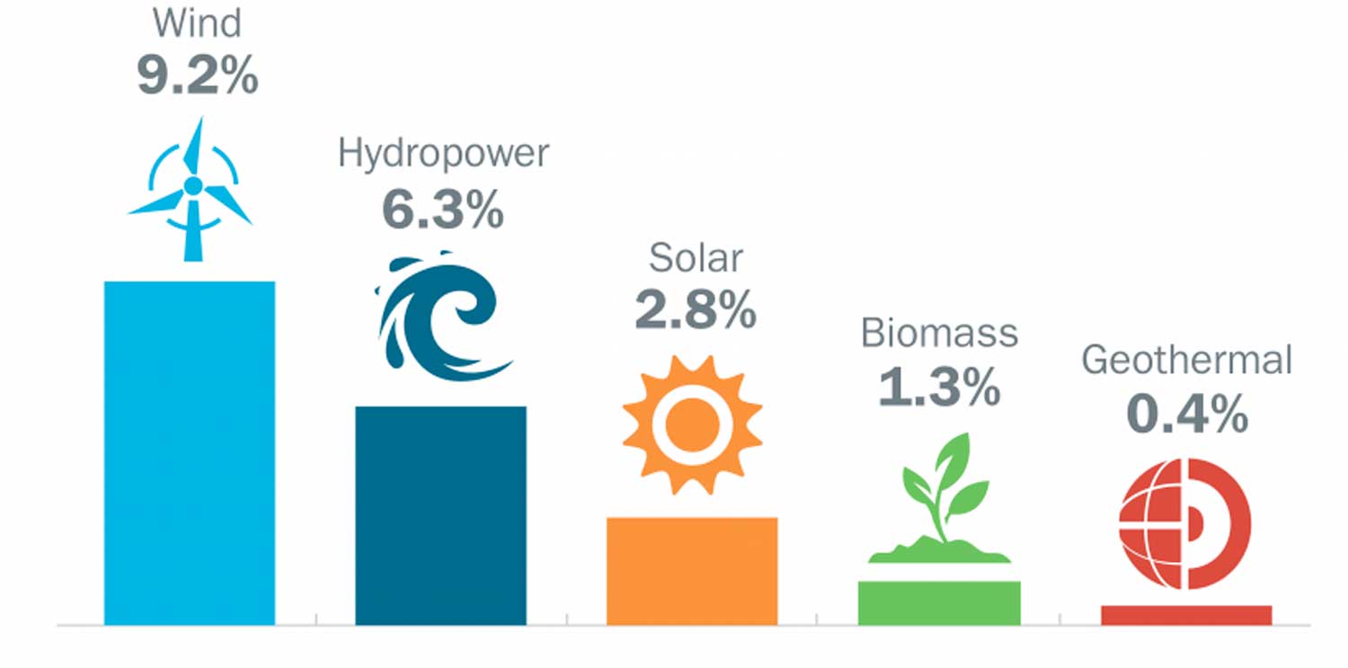 Renewable energy generates about 20% of all U.S. electricity, and that percentage continues to grow. The following graphic breaks down the shares of total electricity production in 2021, and those numbers grew approximately 60% of the utility-scale generating capacity to the U.S. power grid in 2022.